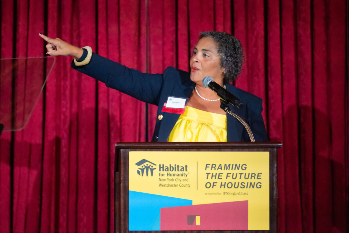 Thank you to everyone who made our 2025 Habitat House Party, Framing the Future of Housing, a spectacular night! From the iconic Metropolitan Club ballroom, our host—award-winning comedian and America’s Got Talent finalist Gina Brillon—brought the house down with laughter and spoke to her personal passion for housing justice. And DJ Tara, an urban planner and housing advocate, kept the energy high. We celebrated our incredible honorees: Maria Torres-Springer, Jeanique Druses, Erica F. Buckley, and Pastor Josias and Helen Rodriguez, whose leadership is shaping a better housing future across New York and beyond. Our CEO, Sabrina Lippman, illustrated how Habitat’s multifaceted toolbox and partnerships “prove that homeownership isn’t just a dream; it’s one of the most practical, powerful solutions we have. Because when families have homes they can afford, neighborhoods stabilize. Children thrive. Economies grow.” She shared the incredible news that we helped a record 2,200 families achieve safety, security, and stability — the most in our 41-year history.